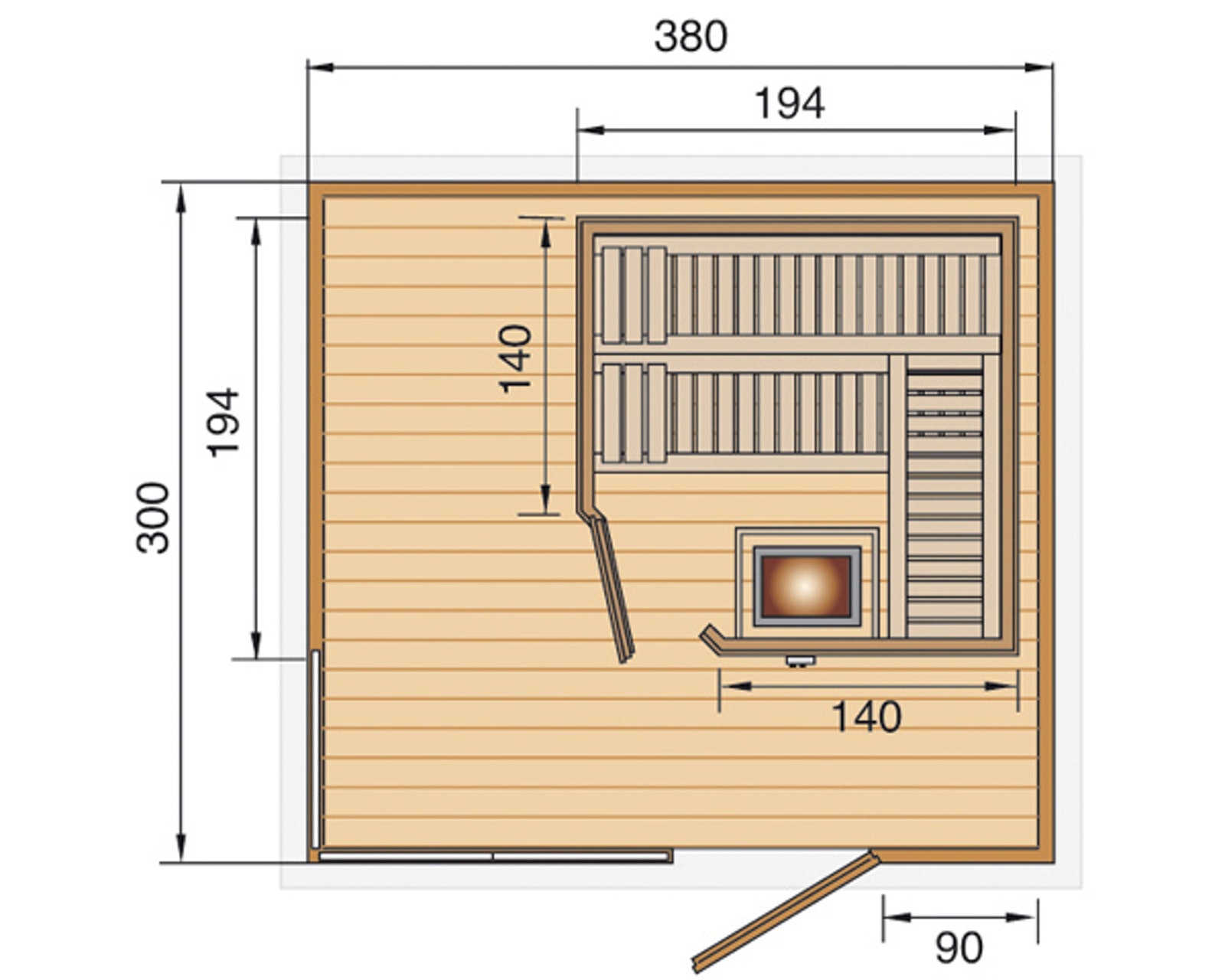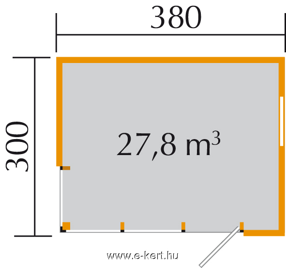 - Weka kész szaunaház alapozási külső sarok mérete 380 x 300 cm (alapozási méret )