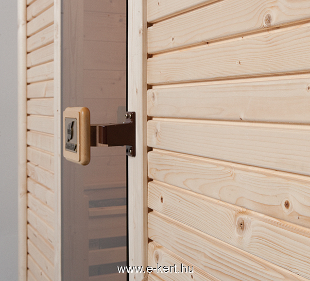 - Szaunakabin anyaga natúr, finomra gyalult 45 mm vastag északi fenyőből épül