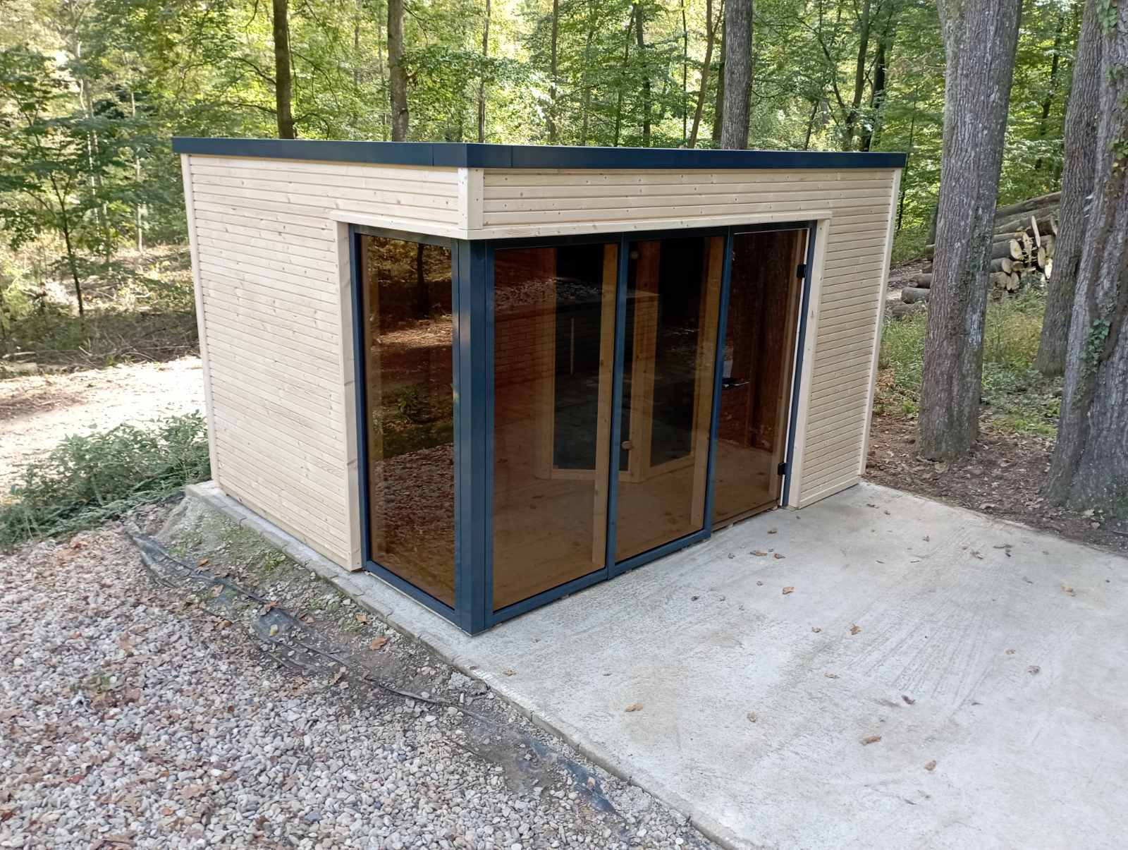 Kész gerendavázas szaunaház, minimál stílusú szaunaház