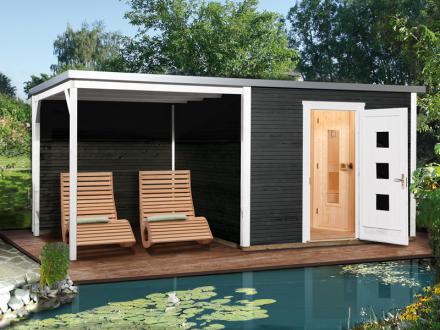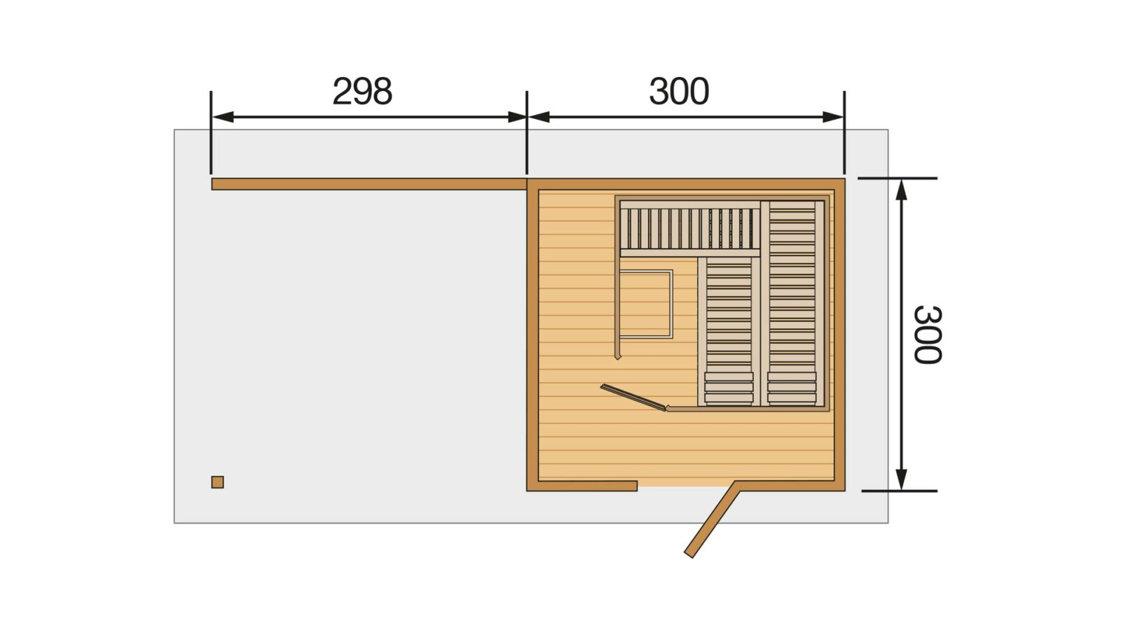 Prémium Weka szaunaház Q413 gerendaház 300 x 300 cm +300 cm terasz