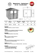 - 316-os Weka szerszámtároló faház kétszárnyú ajtóval, szerszámos ház külső sarokmérete/alapozási mérete: a fenti fotó melletti választó gombbal adható meg a kívánt méretben: 152 x 148 cm- mérettől 198 x 148 cm; 198 x 194 cm ; 254 x 194 cm és 254 x 250 cm és 254 x 295 cm alapozási méretig rendelhető padlózattal együtt
