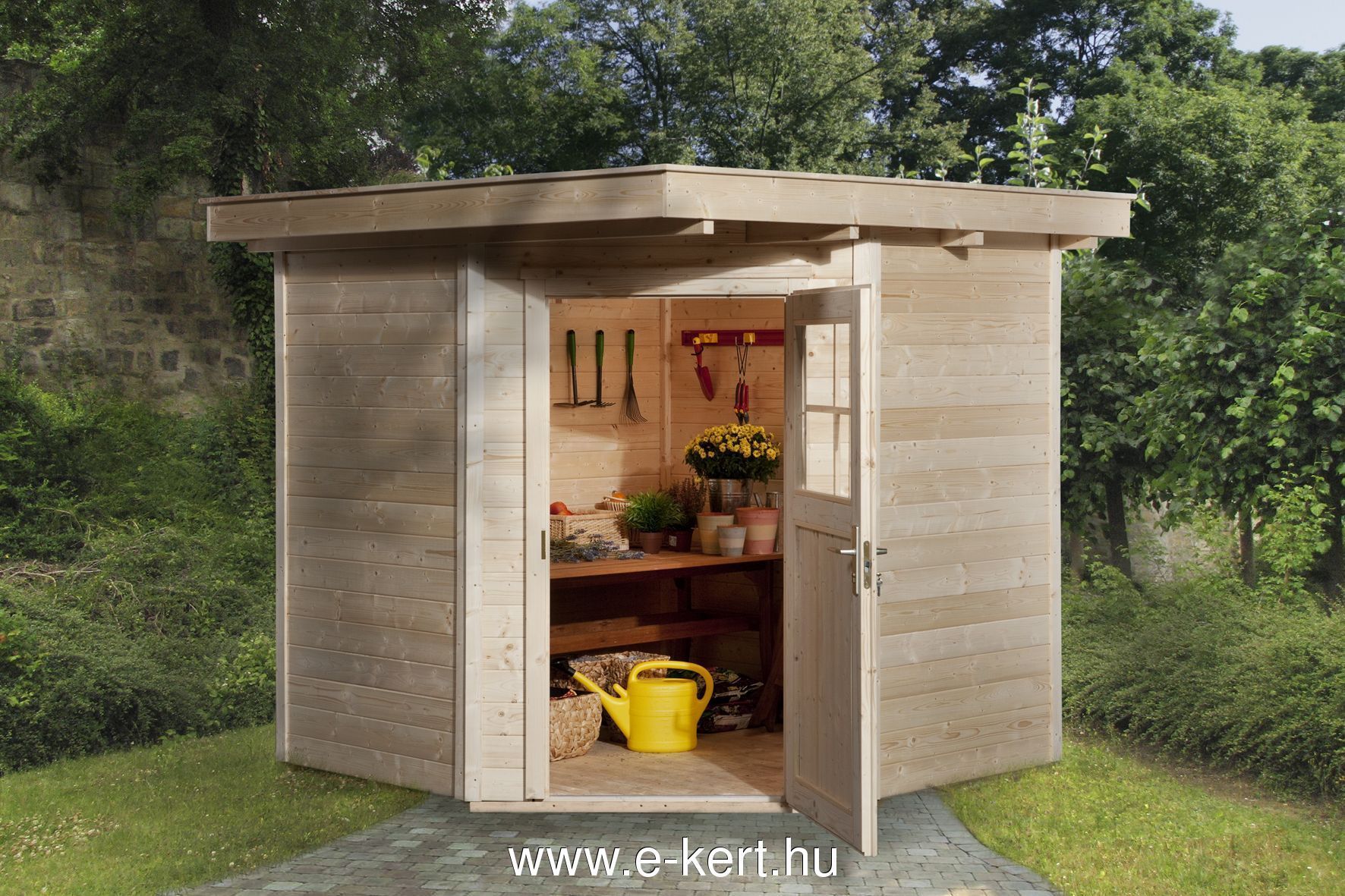 - Praktikus 5-szögletű kivitel, helytakarékos minőségi szerszámtároló faház