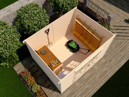 - A kész kerti tároló 16 mm vastag járófelületű padlója telített fa párnafákon nyugszik a tartósság érdekében.