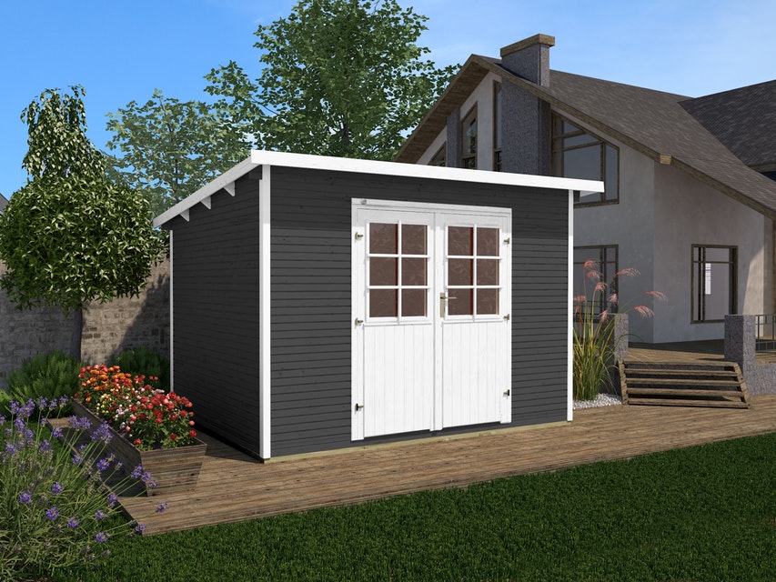Weka 219-es szerszámtároló faház 3-féle méretben és választható gyári színben, padlóval; 28 mm masszív oldalfalakkal. Faház terasszal vagy terasz nélkül.