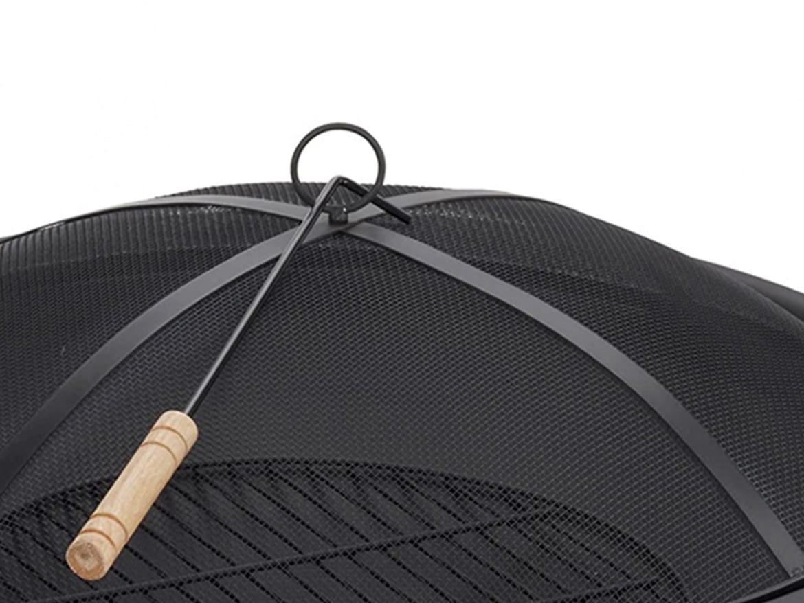 - Hordozható fém tűzrakó szalonnasütő, biztonságos szikrafogó fedéllel együtt