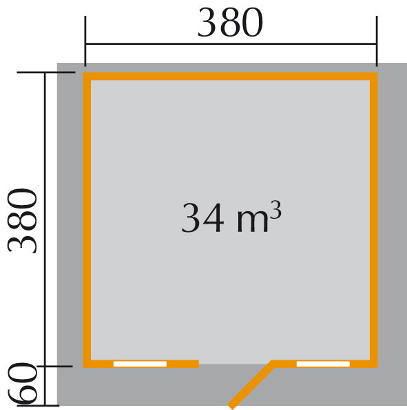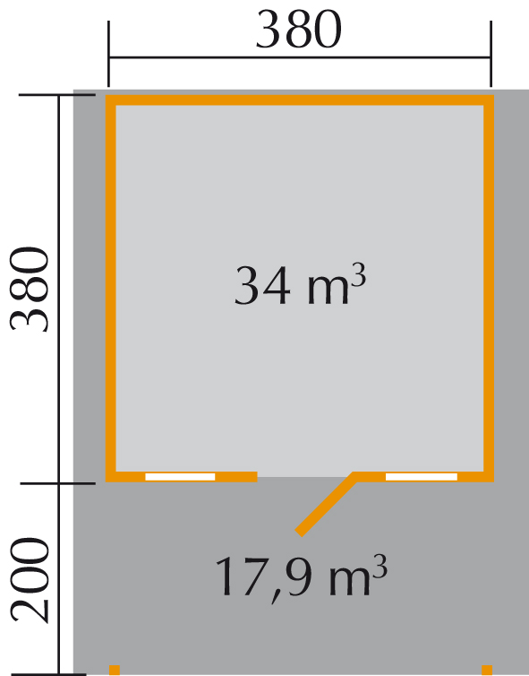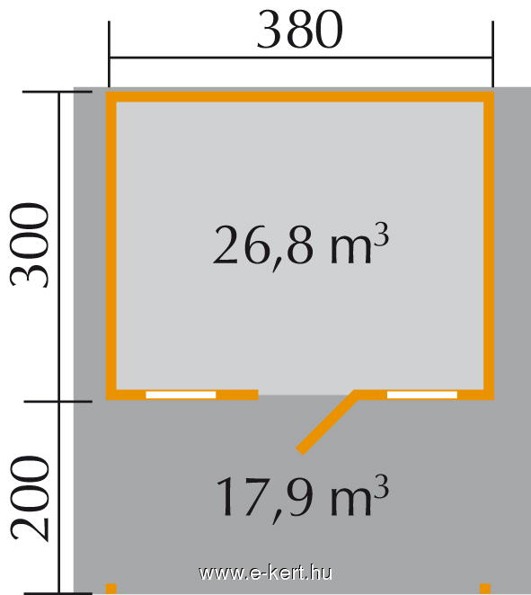 A kívánt méretű faházat a fenti fotó melletti választógombbal tudja kijelölni, amely lehet 380 x 300 cm vagy 380 x 380 cm -es kivitel, terasz tetővel vagy terasz tető nélkül illetve terasszal és korlátokkal is rendelhető.