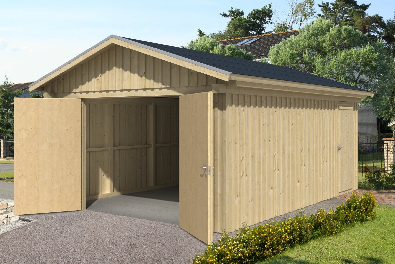 - Zárt garázs alapozási mérete: 393 x 549 cm natúr, kezeletlen fenyő