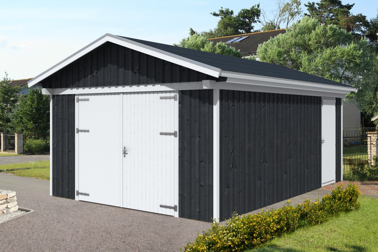 Nyeregtetős zárt garázs előregyártott Falun 1 autó részére