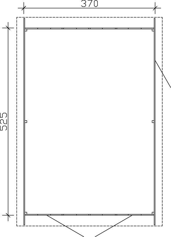 - Zárt garázs / faház alapozási mérete 370 x 525 cm egyállásos autó beálló
