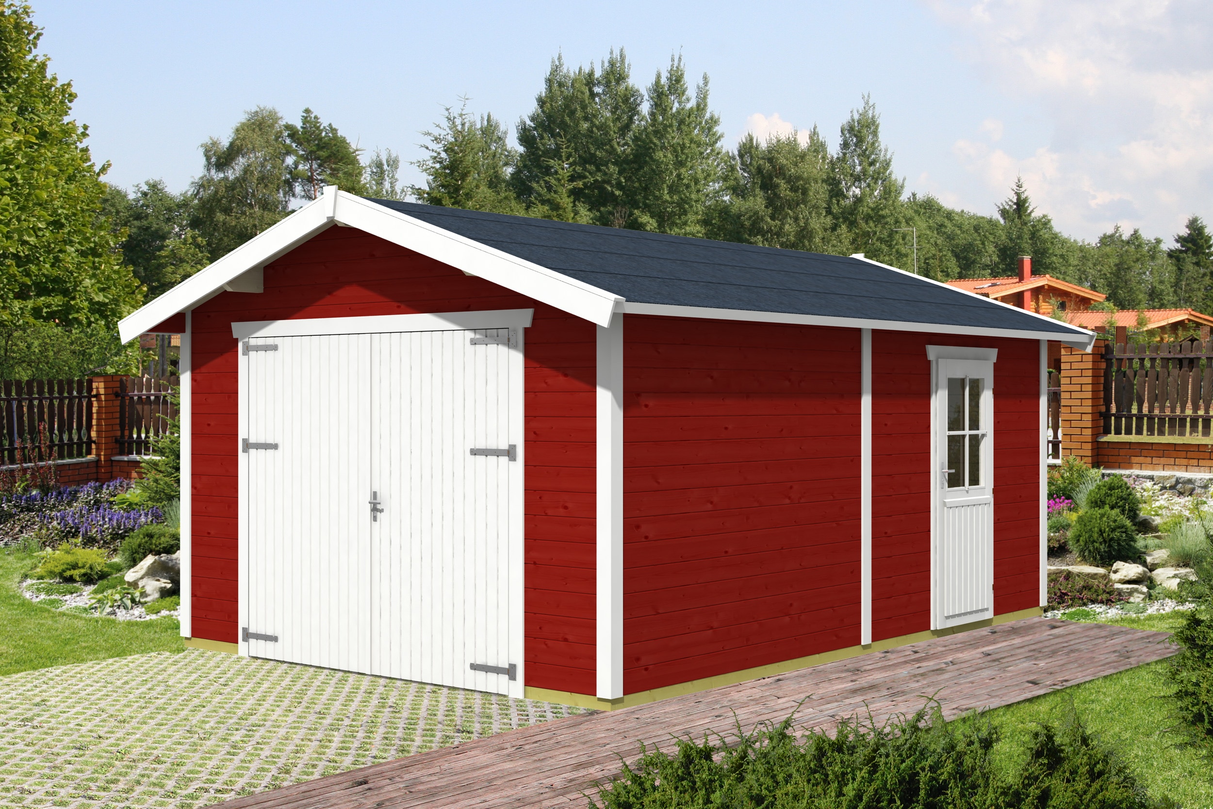 - A garázs rendelhető nagyobb 500 x 525 cm vagy kétállásos zárt gépkocsi tároló faház 570 x 525 cm méretekben is, lásd.: Varberg/2. vagy Varberg/3.