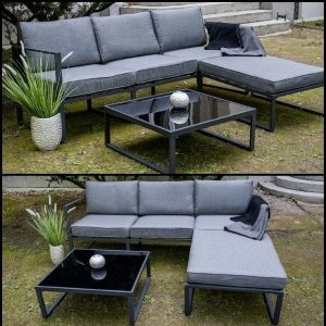 Alumínium kerti bútor, sarok ülőgarnitúra 130 x 80 cm-es kerti asztallal. Terasz bútor Acamp Signature lounge szett